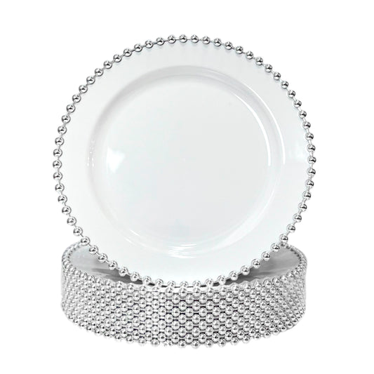$0.00Platos Llanos Lillian / 10 Piezas / Reutilizables / Blanco-Plateado