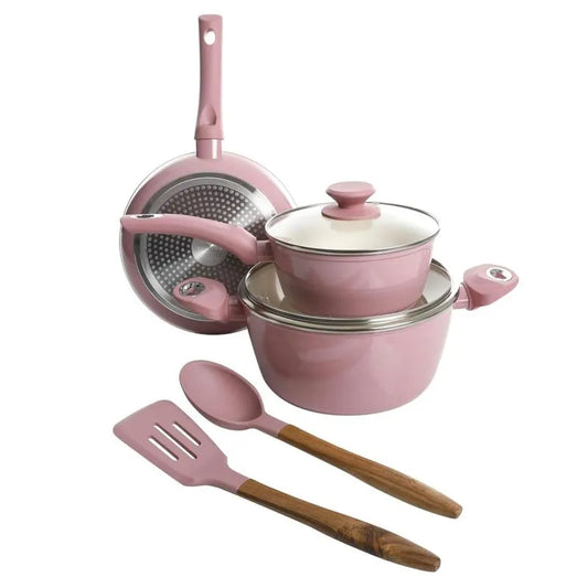 $0.00Juego de Ollas y Sartén Gibson Plaza Café Rosado 7 Piezas