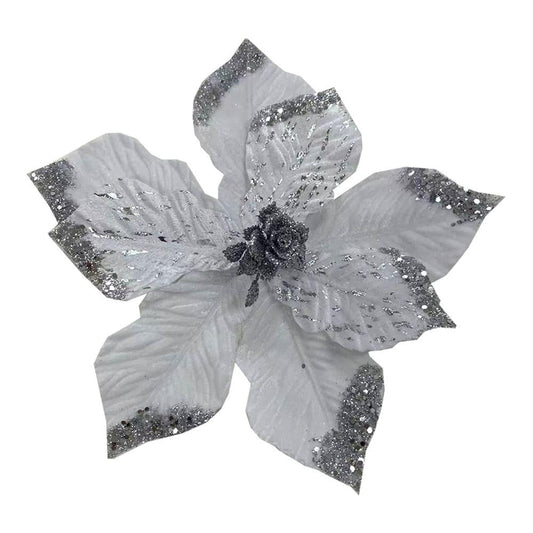$1.99Flor Navideña Poinsettia 30 cm / Blanca y Plateada / Montefiori Christmas