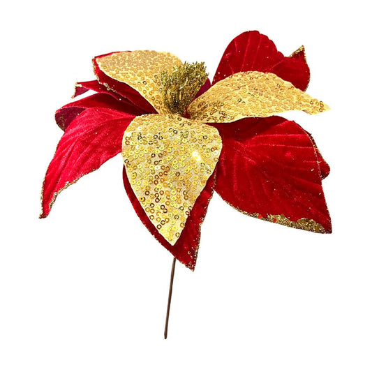$0.00Flor Navideña Poinsettia / 30 cm / Rojo y Dorado / Montefiori Christmas