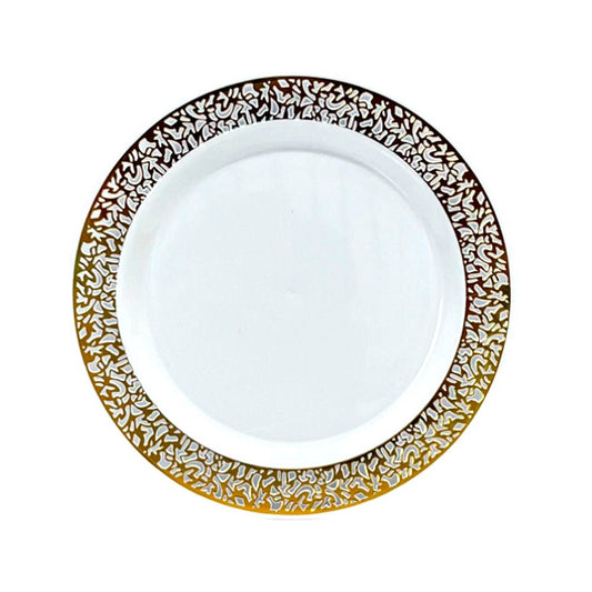 Platos Reutilizables Lillian / 20 Piezas / Blanco con Borde Dorado