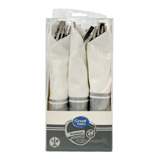 Cubiertos Plástico Home Elegance 24 Piezas / Silver