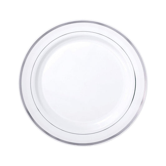 Platos Reutilizables Lillian / 20 Piezas / Blanco con Borde Plateado