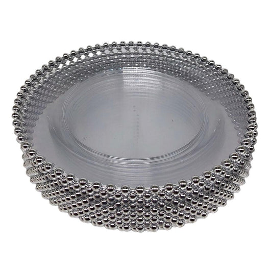 $0.00Platos Llanos Lillian / 10 Piezas / Reutilizables / Blanco-Plateado