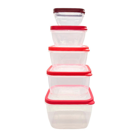 $3.99Envase Plástico Cuadrado Set 5 Piezas - Rojo