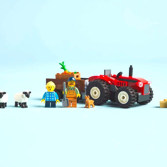 Bloques LEGO Tractor Rojo Remolque Y Ovejas