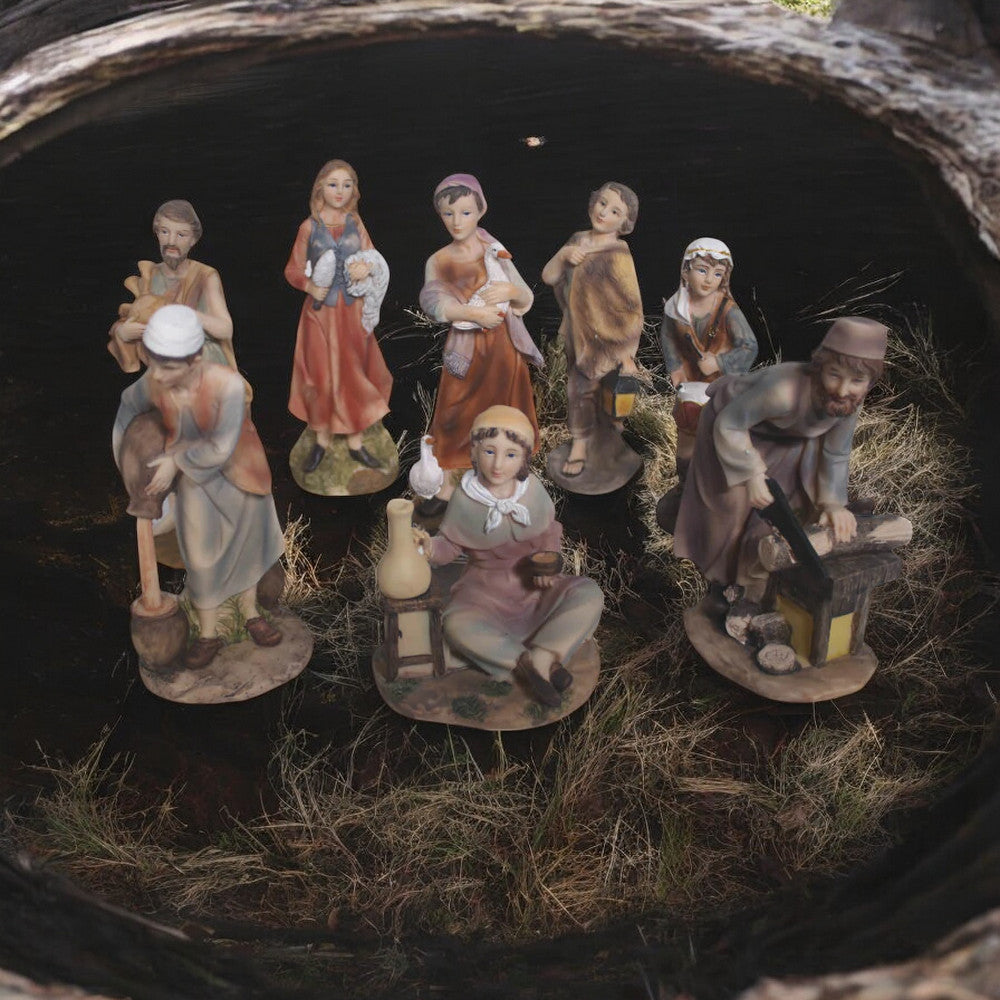 Decora tu nacimiento con aldeanos de 8 piezas, que no falten en tu nacimiento.