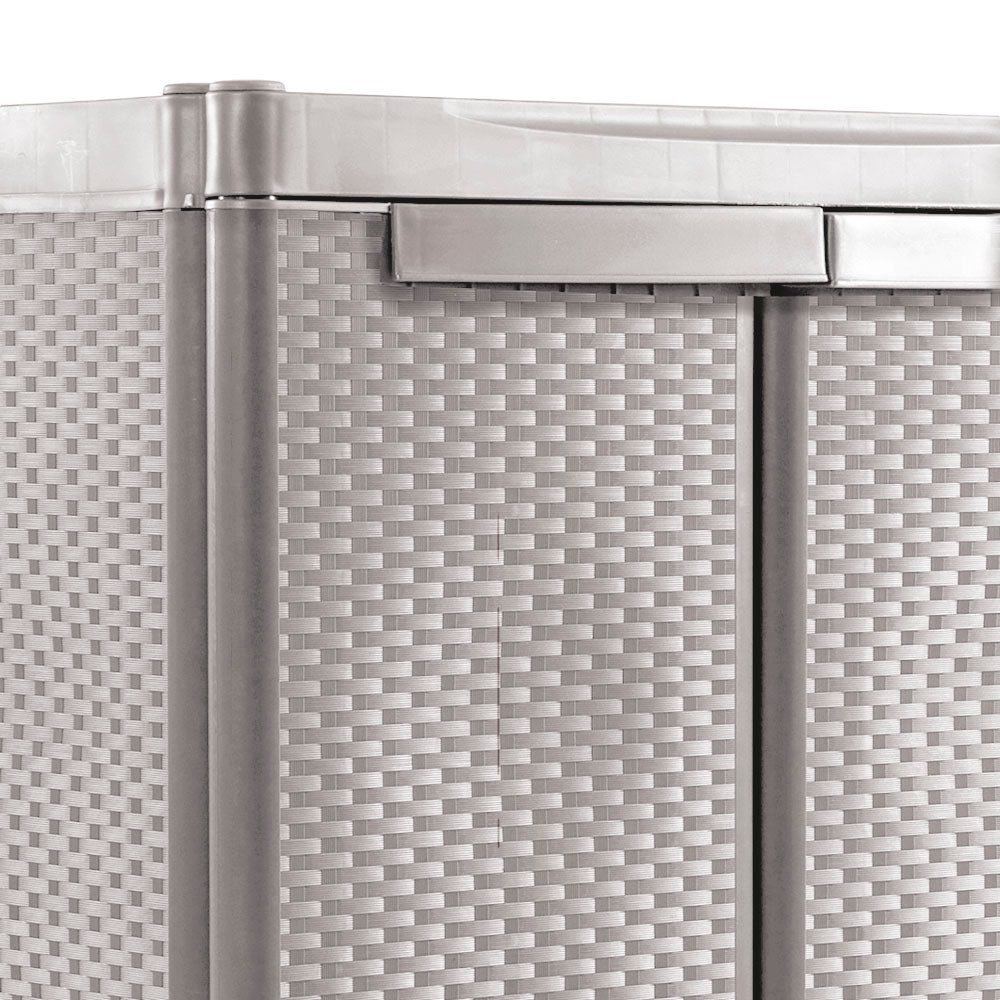 - Su diseño imita el mimbre, brindando un toque natural y moderno que se adapta perfectamente a cualquier espacio de la casa.
