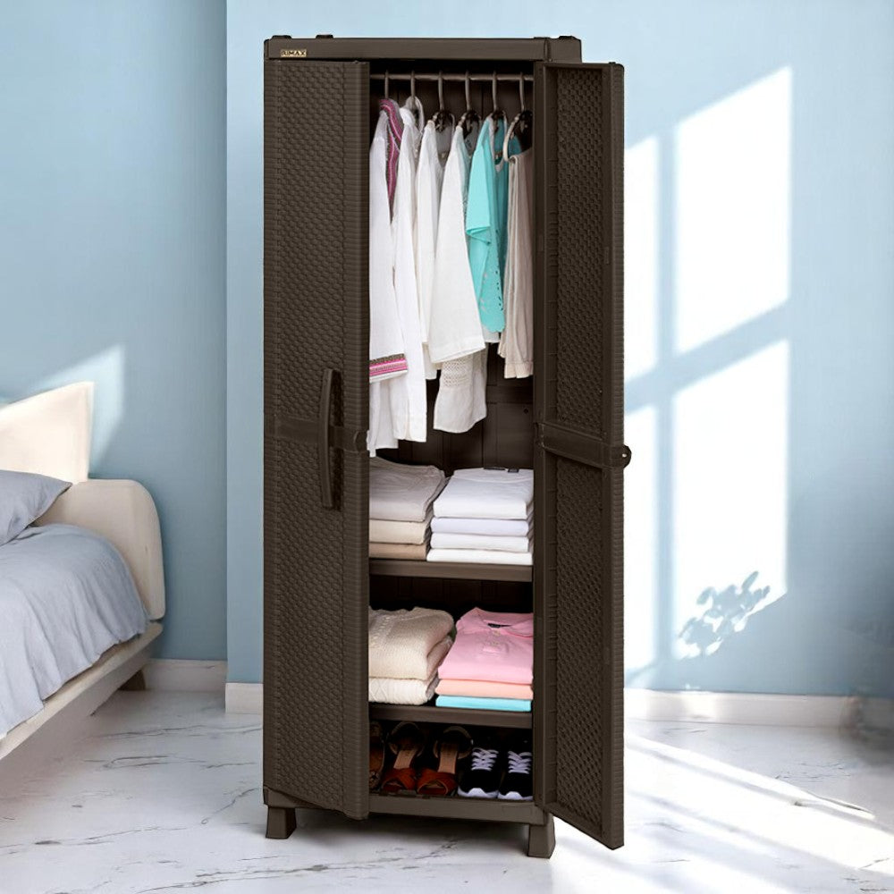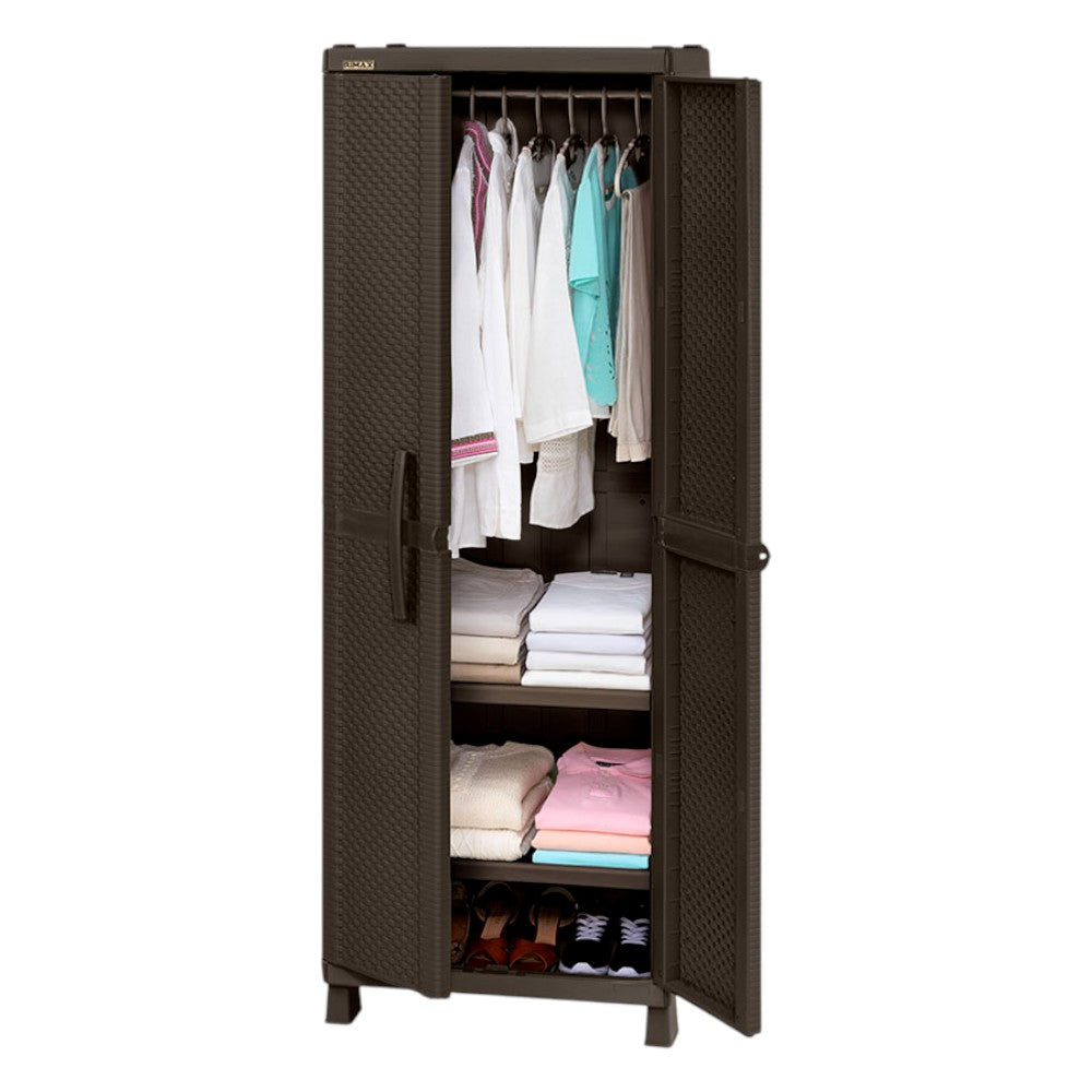 - El Armario Grande Rimax con textura tipo Rattan en color Wengue te ofrece una solución elegante y práctica para organizar tu ropa, accesorios y más. Fabricado en plástico de alta resistencia, combina durabilidad, estilo y facilidad de uso.