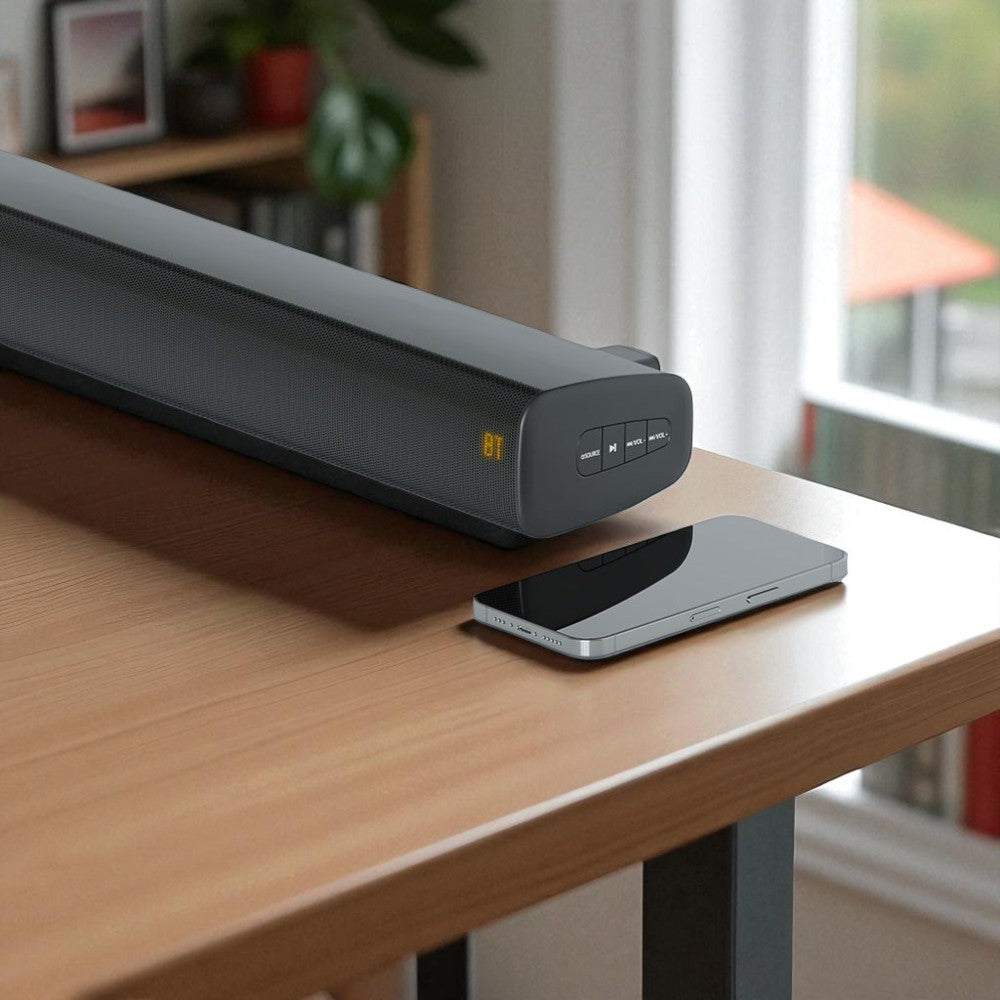 Gracias a sus 60 watts de potencia y dos parlantes de rango completo, disfrutarás un sonido claro, vibrante y envolvente, ideal para tus películas, series y conciertos favoritos. Su elegante diseño compacto se adapta fácilmente a cualquier espacio, ya sea sobre una mesa o montada en la pared. Además, ofrece múltiples opciones de conexión —HDMI® ARC, óptico digital, RCA y Bluetooth® v5.0— para que conectes todos tus dispositivos sin complicaciones.