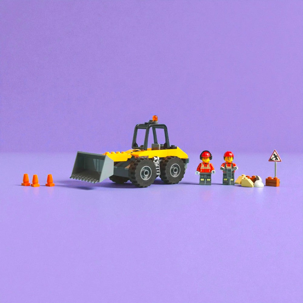 ¡Prepárate para entrar en acción con la Cargadora con Ruedas Amarilla LEGO® City! Esta increíble máquina cuenta con una gran pala y resistentes llantas para conducir por superficies llenas de baches. Coloca la señal y los conos para marcar la zona de trabajo, ponte los protectores auditivos y usa el martillo neumático. Luego sube a la cabina y maneja la formidable máquina. ¡Que te diviertas!