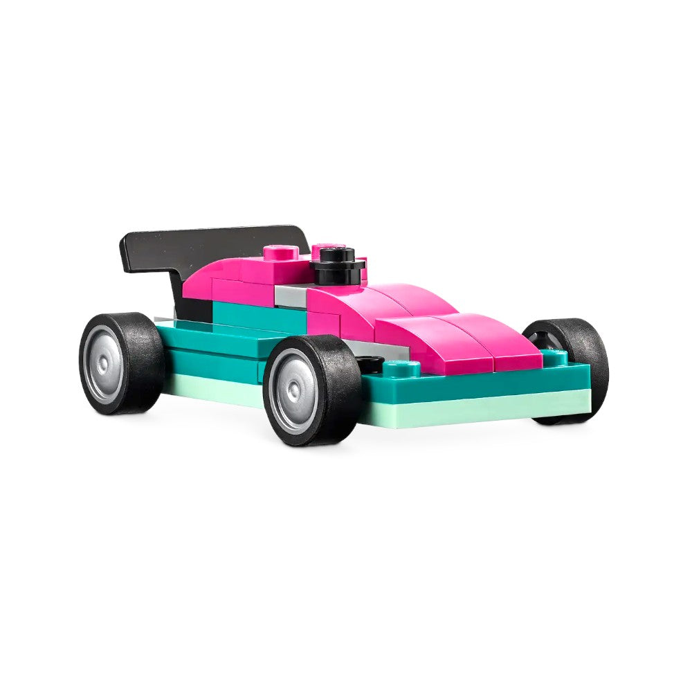 Con 900 ladrillos de construcción, elementos especiales y 52 ruedas, además de instrucciones fáciles de seguir, los peques pueden construir un coche de policía, un camión de los helados, un quad, un cargador frontal, un camión, un coche familiar, un todoterreno y una limusina de juguete. Después, basándose en las ideas sobre diseños, detalles y decoraciones, ¡podrán reconstruir los vehículos de muchas otras formas! Y, a medida que desarrollen sus habilidades de construcción creativa, se atreverán con sus propios diseños inspirándose en las 10 imaginativas ideas incluidas. Las instrucciones también están disponibles en la app LEGO Builder: su intuitiva guía de construcción.