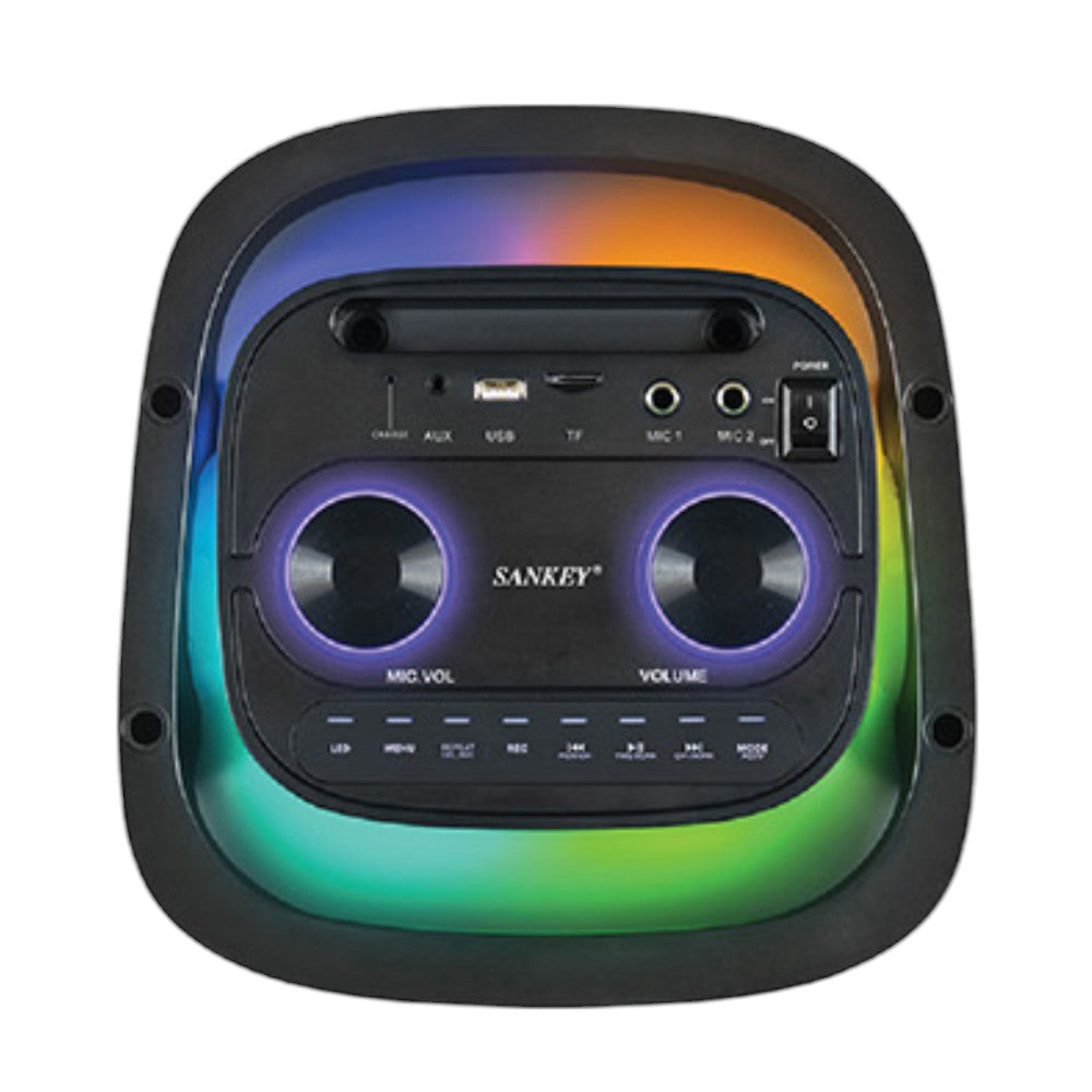 - ¡Lleva la fiesta donde quieras! Esta bocina portátil de Sankey te ofrece potencia, color y conectividad para que no falte el ritmo en ningún lugar. Ideal para reuniones, exteriores o simplemente disfrutar tu música favorita.