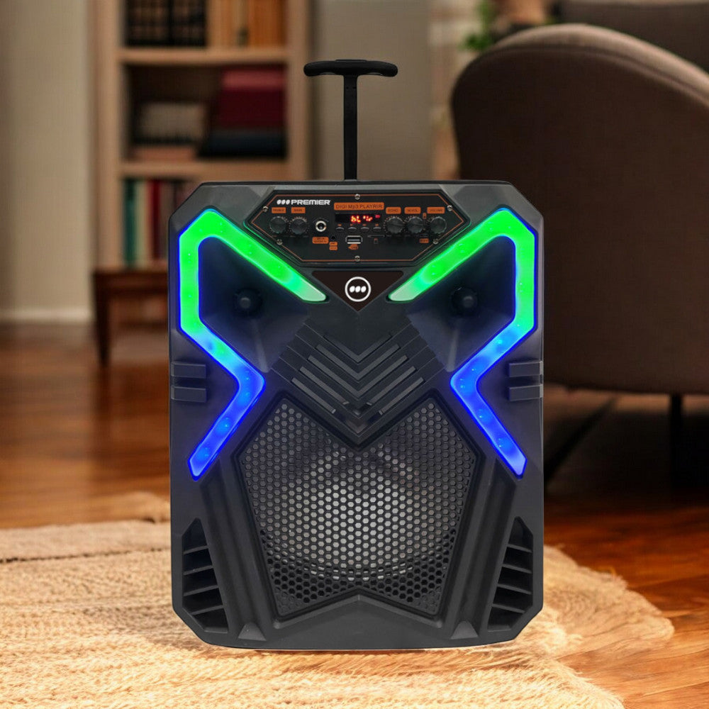 ¡Haz que tu sonido viaje contigo! Adquiere la bocina recargable Premier de 12" con trípode y ruedas y lleva la fiesta a donde vayas!