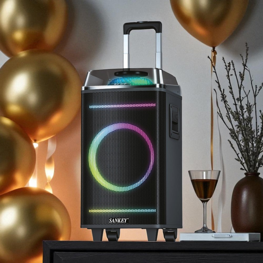 Disfruta de un sonido impactante, graves potentes y un espectáculo de luces que convertirá cualquier espacio en tu pista de baile personal.