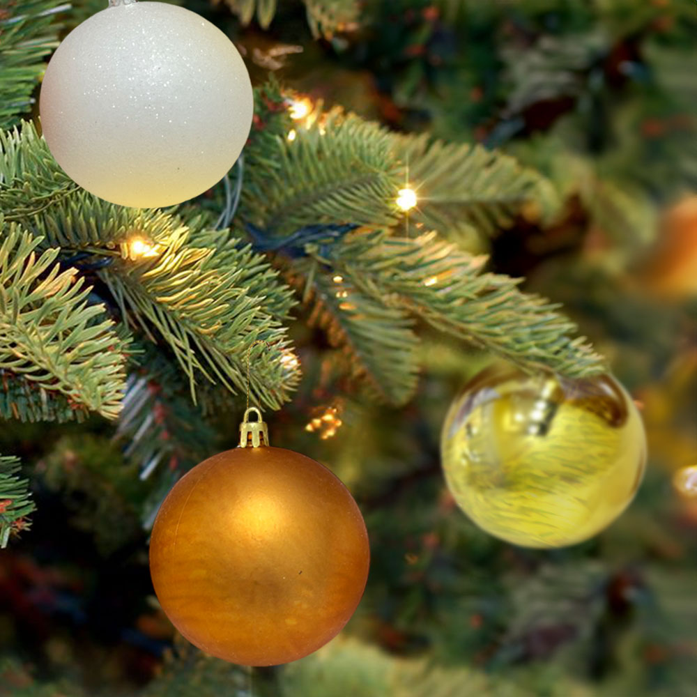 - Las bolas vienen en una selección de tonos clásicos y modernos, ideales para darle un toque único a tu árbol.