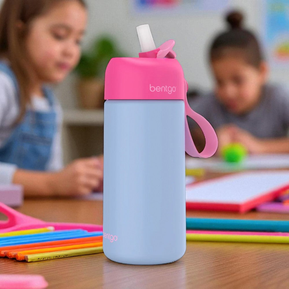 La botella térmica Bentgo combina funcionalidad con un estilo sobrio y elegante, ideal para niños activos y familias que prefieren un look más neutro. Su doble pared de acero inoxidable con aislamiento al vacío mantiene las bebidas frías hasta por 12 horas, perfecta para el colegio, paseos o actividades al aire libre.