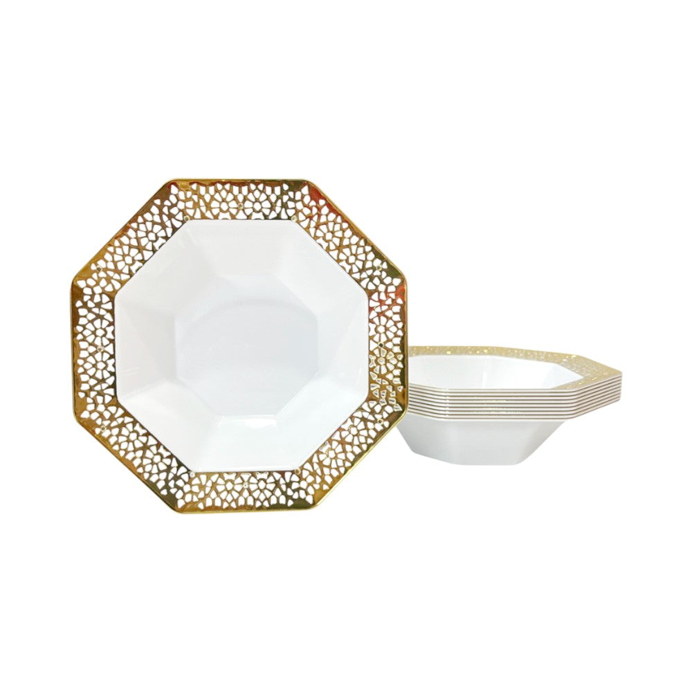 Elegancia y practicidad se unen en el Bowl Lillian de 5 onzas, con un delicado diseño en blanco realzado por un borde dorado que aporta distinción a tu mesa. Fabricado en plástico premium de alta calidad, es resistente, duradero y 100% libre de BPA, pensado para realzar cualquier ocasión especial.
