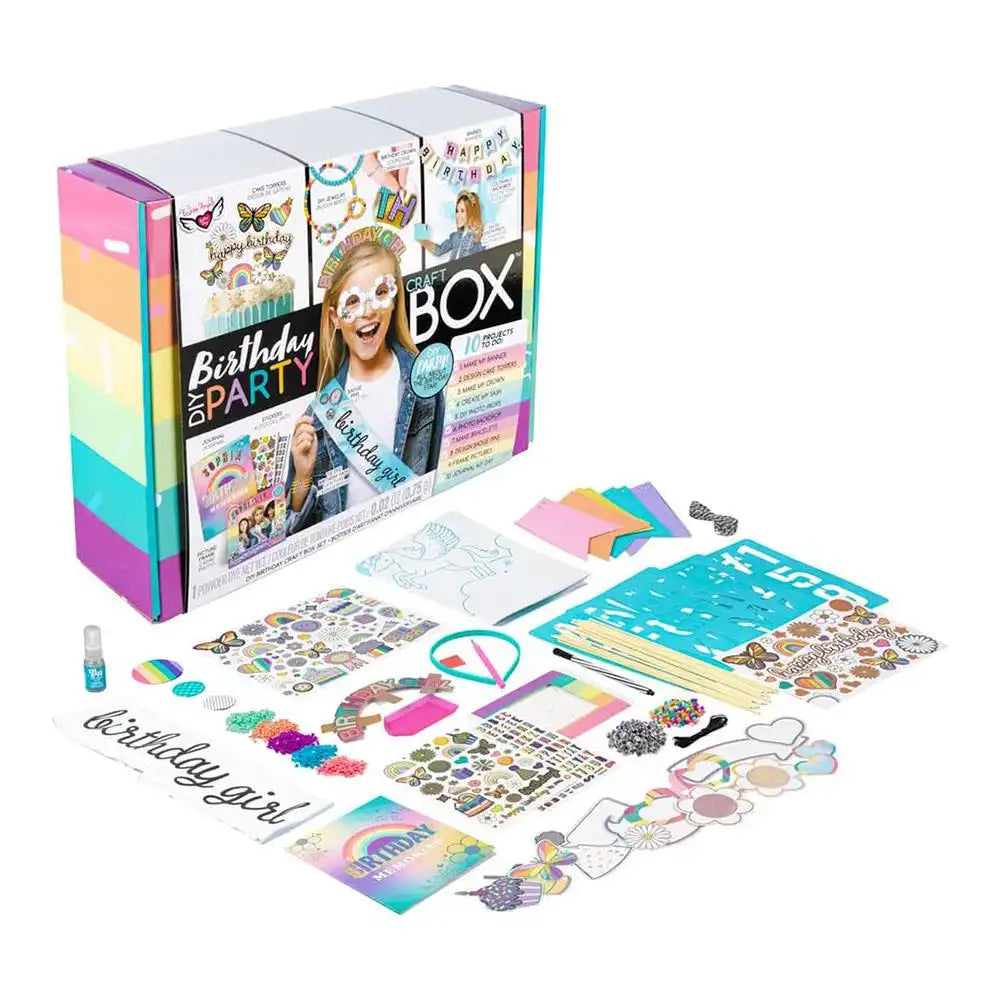 - Esta caja de manualidades de cumpleaños incluye más de 10 proyectos de bricolaje para que la cumpleañera le dé su propio toque creativo a la celebración del cumpleaños.