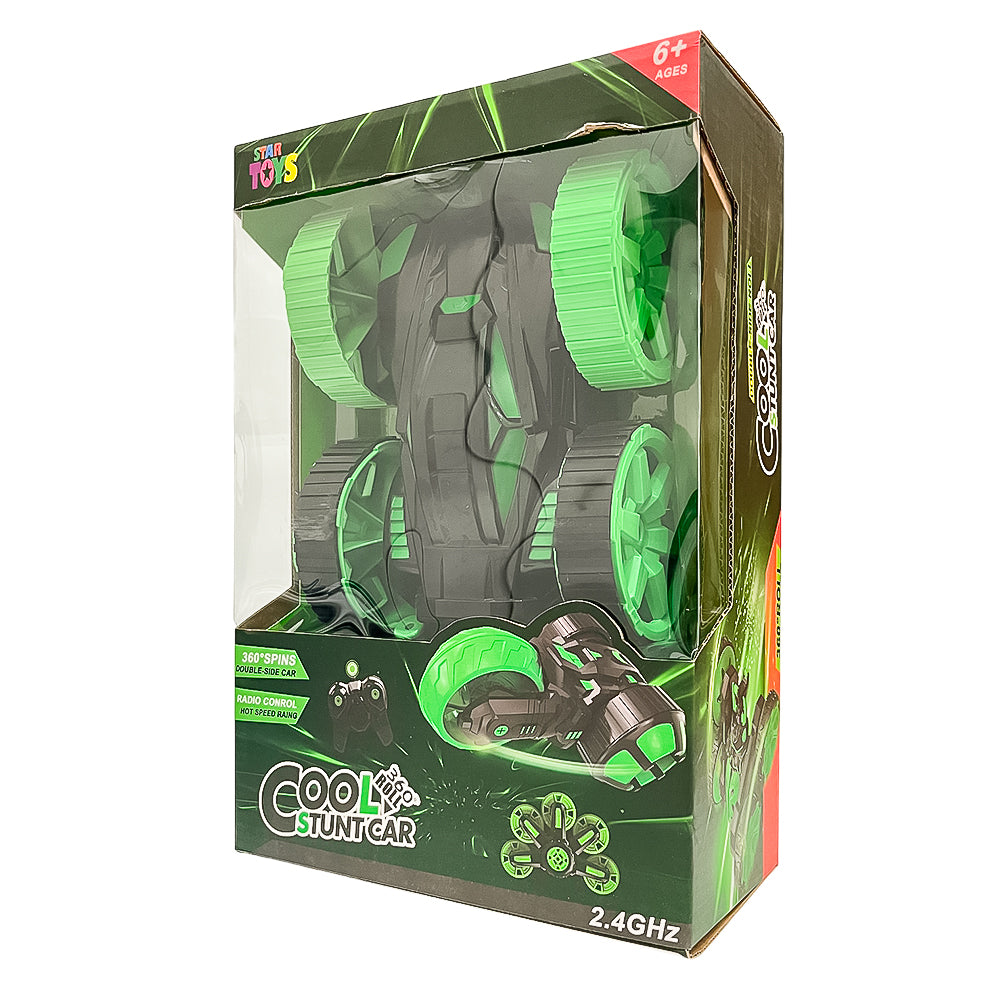 Un carro acrobático de doble cara que domina giros extremos y ofrece control total gracias a su sistema RC de 2.4 GHz.