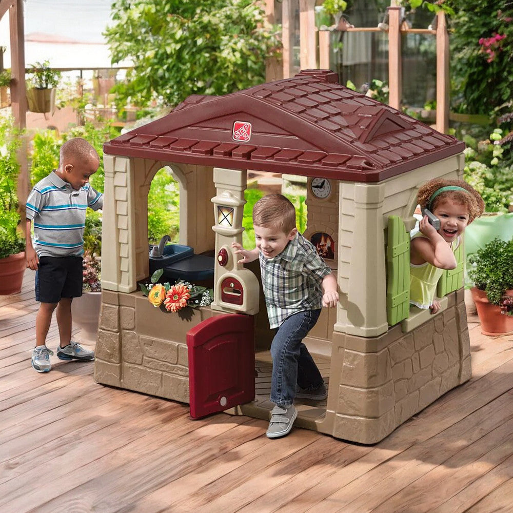 ¡Únase a la diversión en la propia casa de su hijo! El diseño abierto de la casa de juegos al aire libre Neat & Tidy Cottage II ™ para niños pequeños permite interacciones en cada esquina a través de las ventanas y la entrada de estilo holandés, con espacio para que varios niños jueguen o se sienten en la mesa de la cocina moldeada para una comida simulada.
