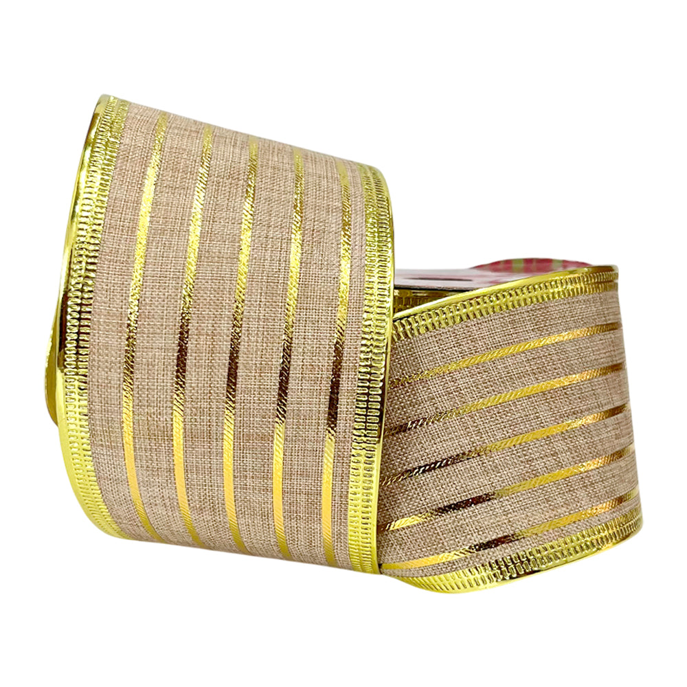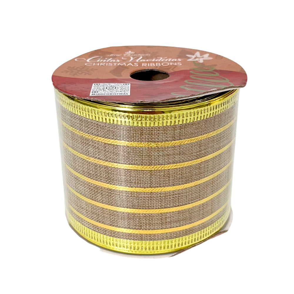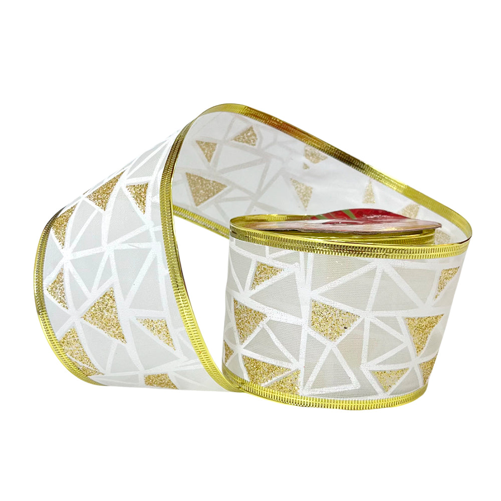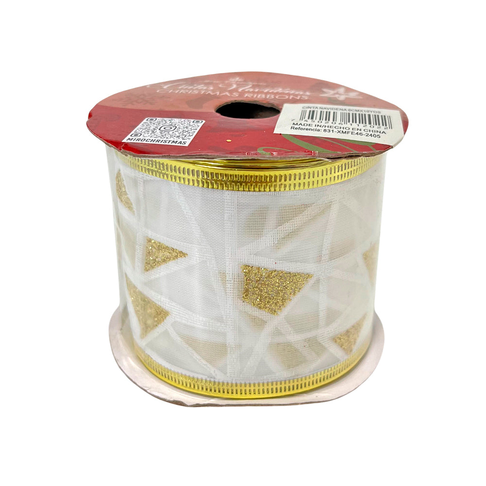 Realza tus decoraciones con la elegancia de esta cinta navideña dorada y blanca, perfecta para envolver regalos, adornar tu árbol o crear arreglos llenos de brillo y estilo.
