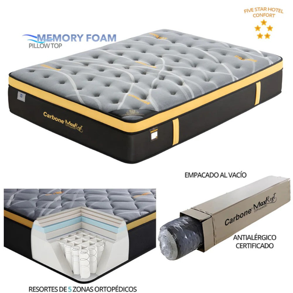 - Diseñado con tecnología de espuma de memoria y carbono para brindar un sueño saludable y reparador.