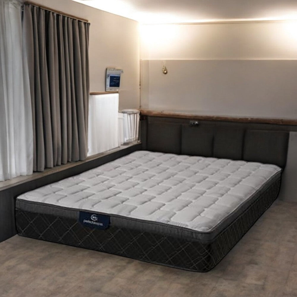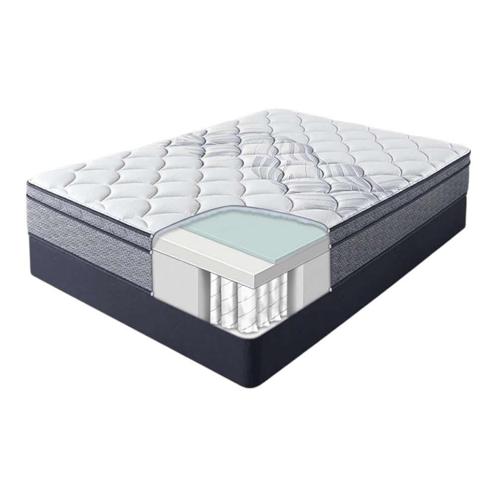 - Serta Wrapped Support™ Coil Technology: Resortes individualmente forrados que brindan un mejor soporte y reducen la transferencia de movimiento.