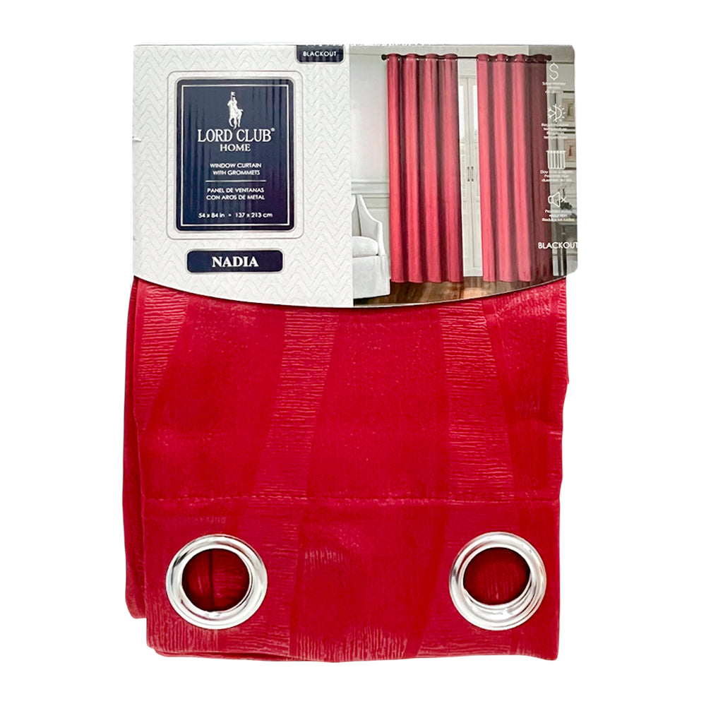 Disfruta de privacidad y confort con la cortina Nadia Burgundy de Lord Club. Su diseño blackout bloquea eficazmente la luz exterior, creando un ambiente más oscuro y relajante, mientras los aros facilitan una instalación rápida y sencilla.