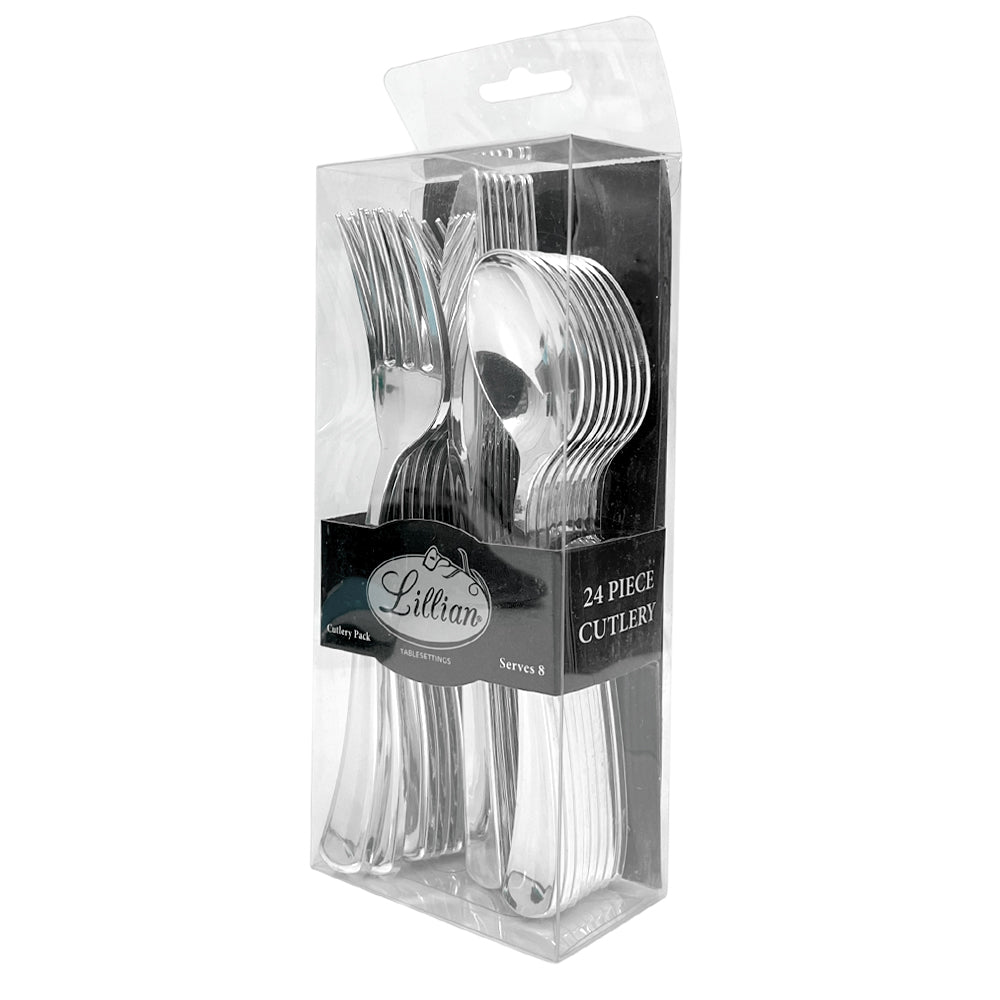 El set de cubiertos Lillian ofrece una solución elegante y funcional para tus celebraciones. Con un diseño refinado y fabricados en plástico resistente, estos cubiertos son ideales para mesas bien presentadas sin complicaciones de limpieza.