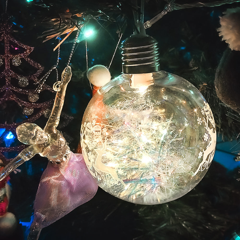 Estas esferas decorativas de 10 cm de diámetro cuentan con un diseño transparente que permite apreciar la iluminación interior, creando un efecto delicado y encantador. Son perfectas para realzar el árbol de Navidad, guirnaldas, coronas o incluso como decoración colgante en ventanas y espacios especiales.