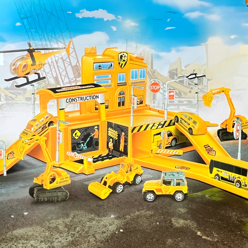 - Incluye vehículos surtidos y accesorios de estacionamiento.