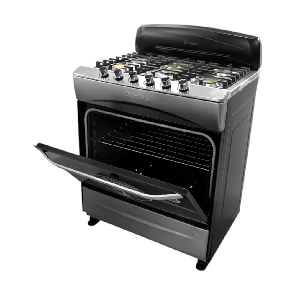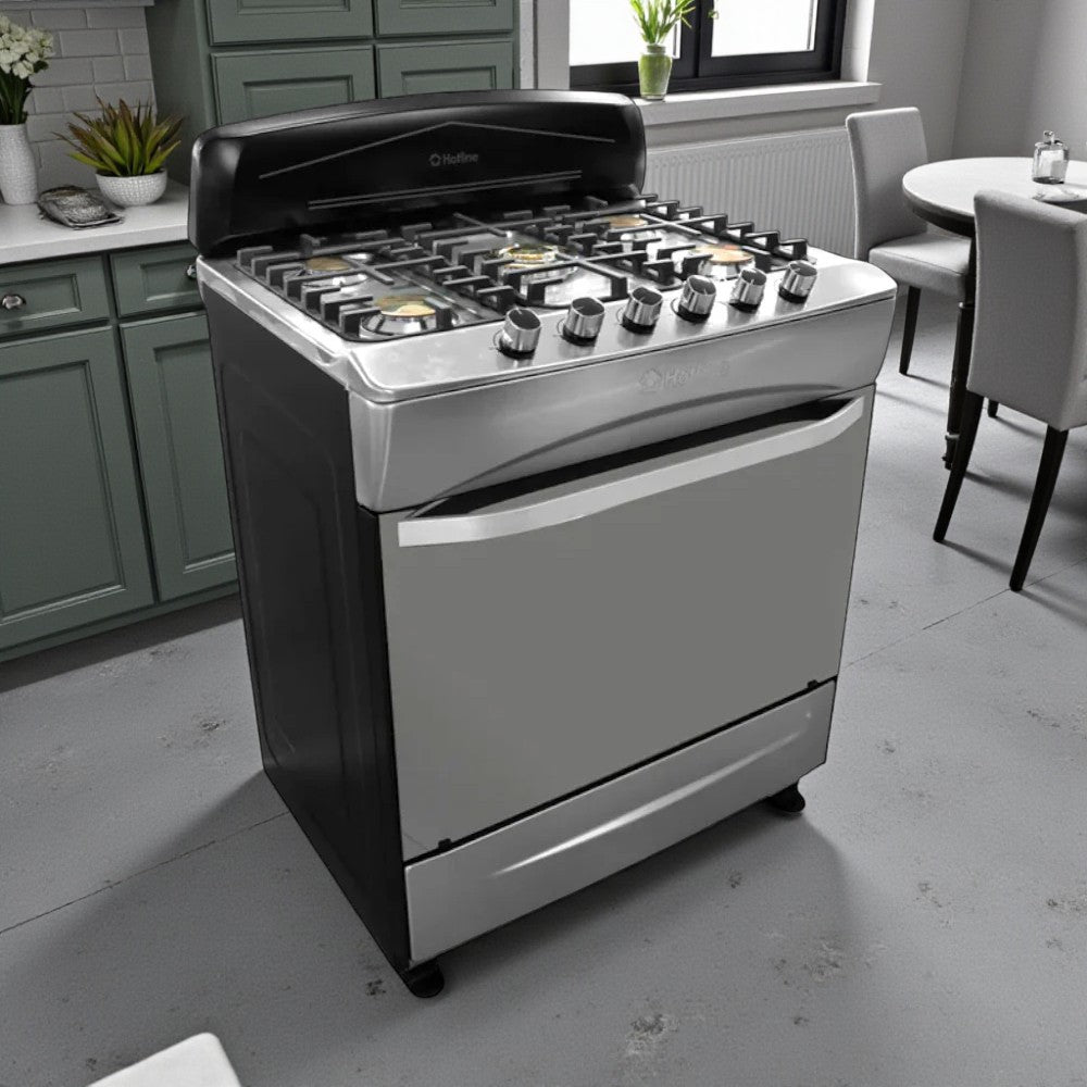 La Estufa Hotline HLGR3001 de 30 pulgadas ofrece potencia, espacio y un diseño moderno que transforma tu experiencia en la cocina. Con cinco quemadores de bronce, un horno amplio con vidrio panorámico y materiales resistentes, es una estufa diseñada para brindar durabilidad, practicidad y un rendimiento superior en cada preparación.