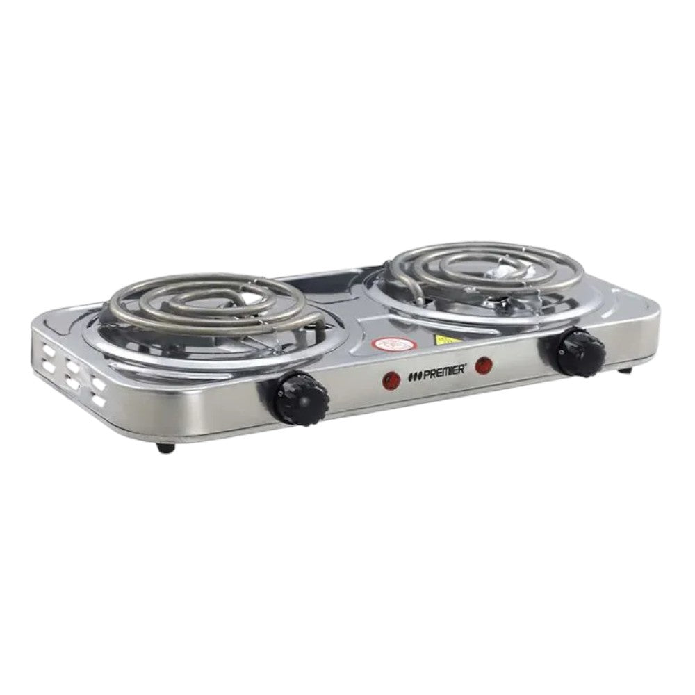 - Los 2 quemadores eléctricos permiten cocinar de forma rápida y uniforme, ideal para preparar platillos sencillos o calentar alimentos con facilidad.