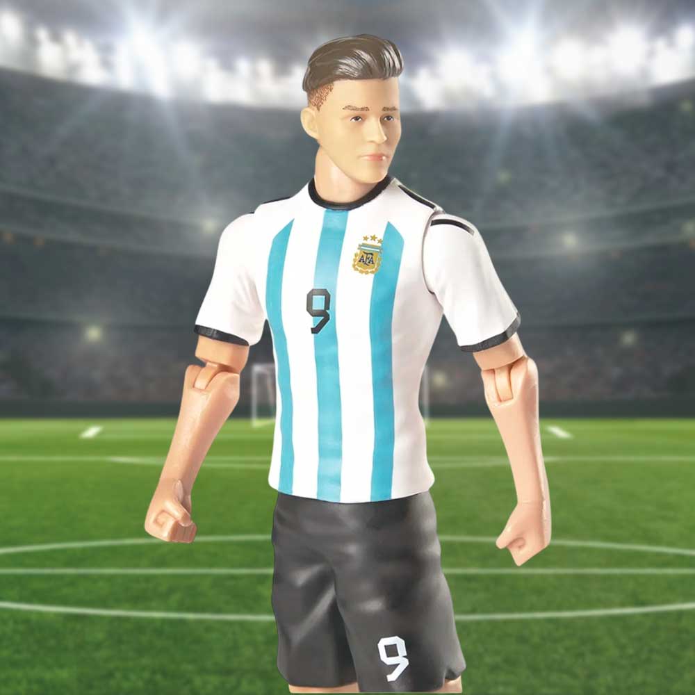 - Figura oficial de Banbo Toys: Representación fiel de Julián Álvarez con el uniforme de la Selección Argentina, ideal para fans y coleccionistas.