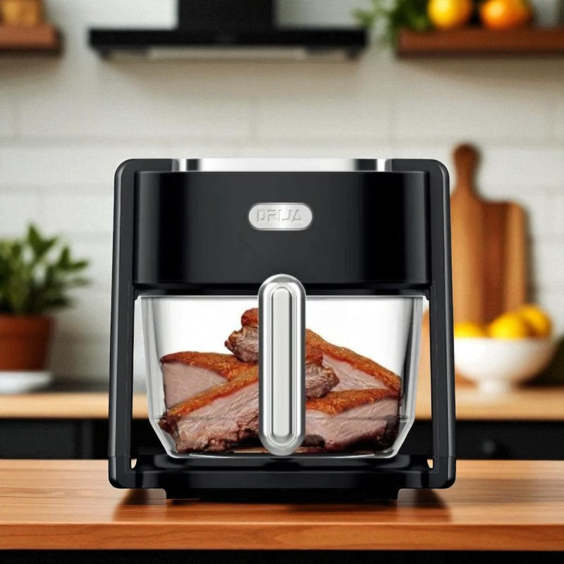 - Además, con su tecnología de cocción sin aceite, capacidad generosa, controles ajustables, temporizador integrado, facilidad de limpieza y diseño elegante, te ayuda a preparar comidas deliciosas con menos grasa y sin complicaciones.