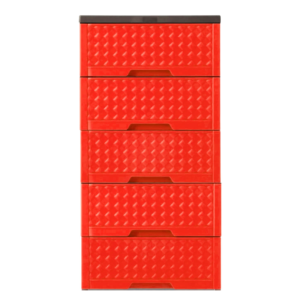 Organiza con estilo y energía tus espacios con el gavetero moderno Plastek de 5 gavetas en color rojo.