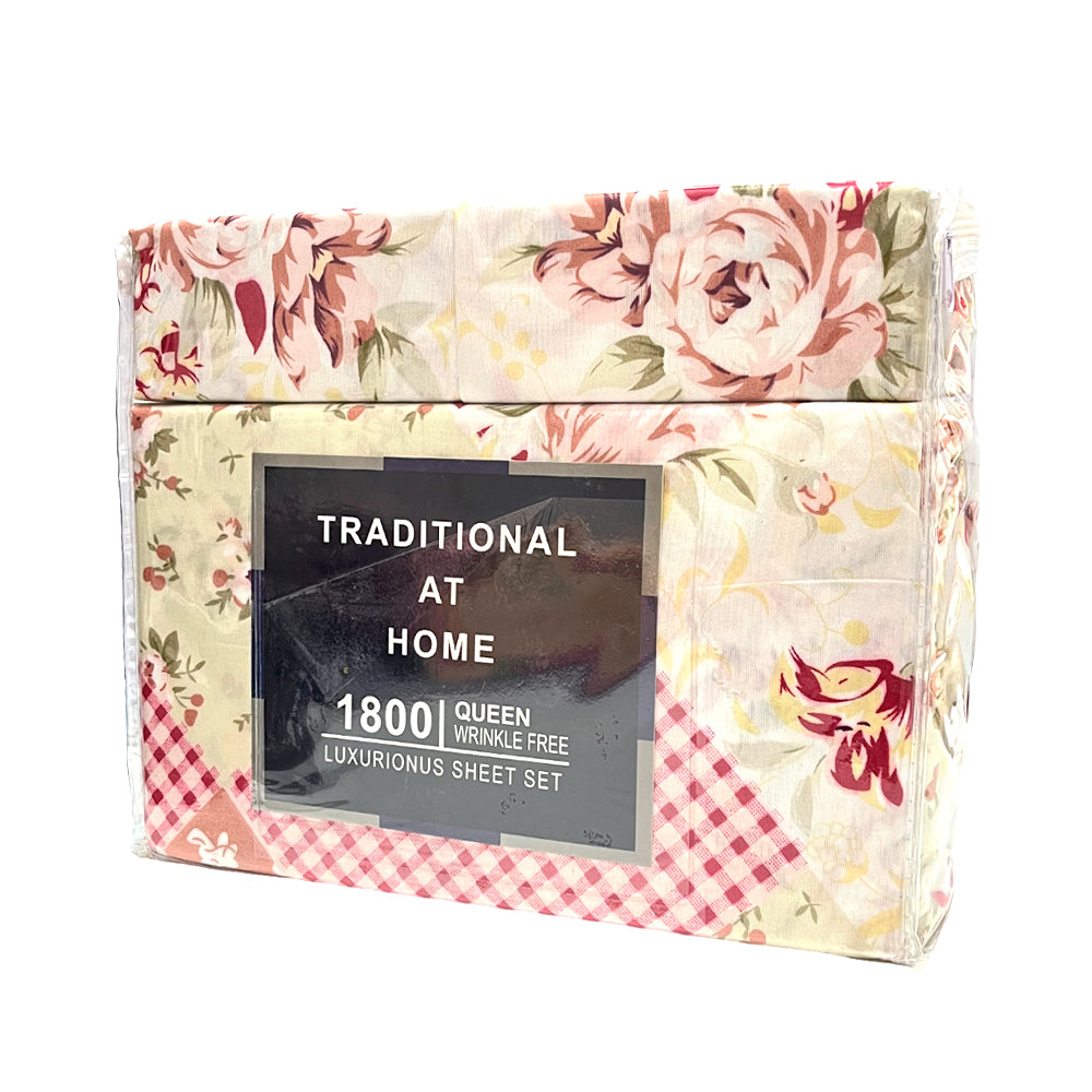 - Set de 4 piezas: sábana ajustable, sábana plana y 2 fundas de almohada.
