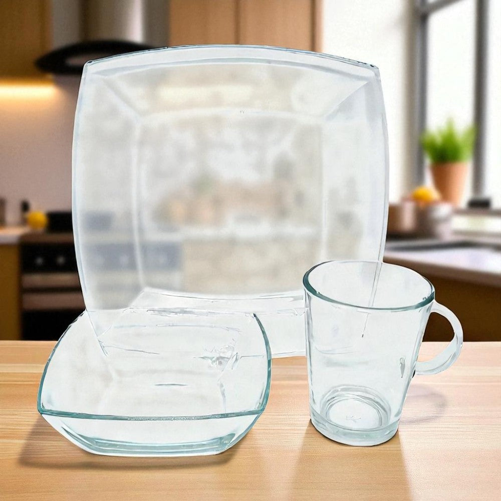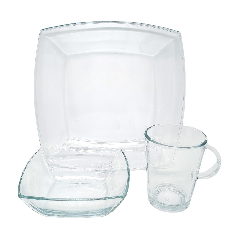 El juego de vajilla Gibson Elite Soho Lounge en Vidrio Claro de 12 piezas combina diseño moderno con la simplicidad del vidrio transparente para darle a tu mesa un estilo limpio y sofisticado. Su acabado elegante permite que cada platillo se luzca al máximo, ideal para ocasiones especiales o el uso diario con un toque refinado.