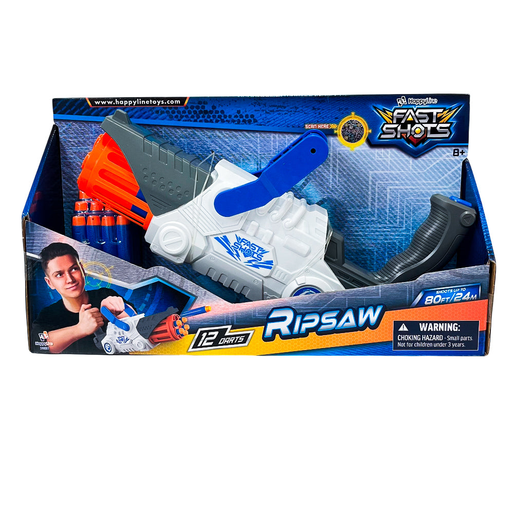 Diversión garantizada con el set de lanzador Fast Shots que incluye 12 dardos de espuma para un juego seguro y emocionante.