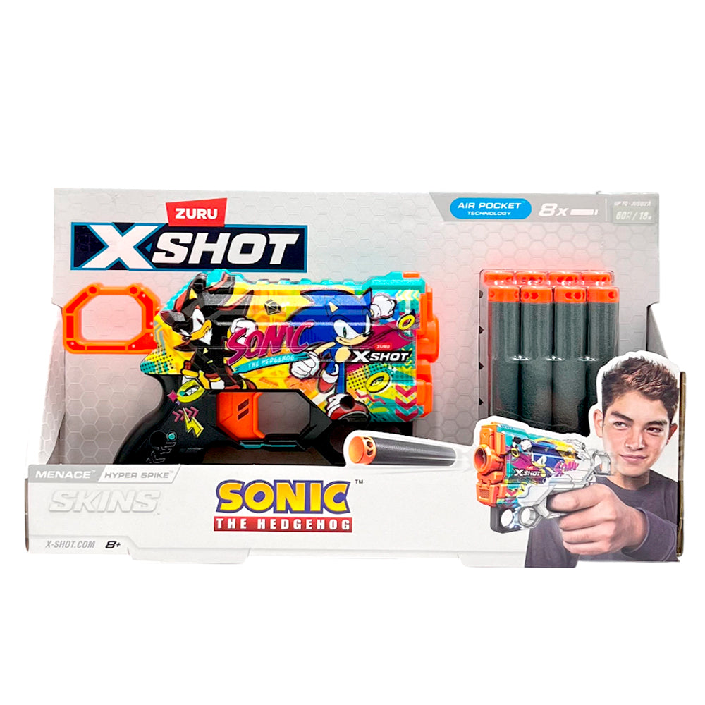 ¡Velocidad, estilo y acción garantizada! El Lanzador Sonic Menace X-Shot combina un diseño moderno con ligereza y facilidad de manejo, perfecto para niños y adolescentes que buscan aventuras al aire libre con 8 dardos incluidos.