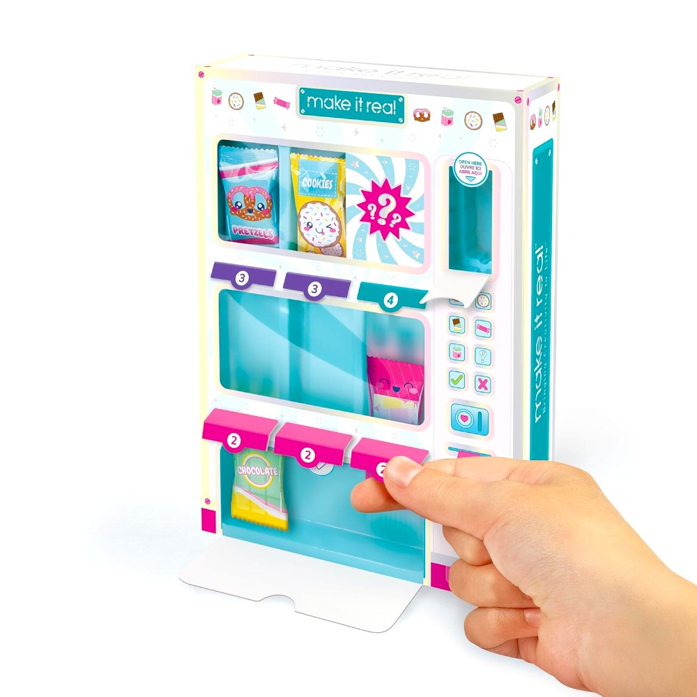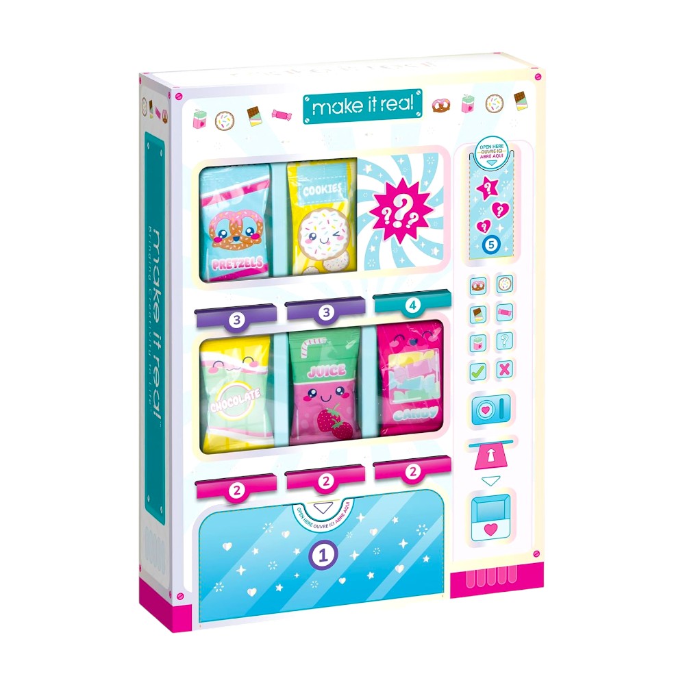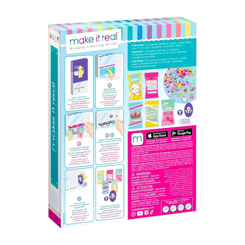 ¡Gira, sorpréndete y crea! La Máquina de Joyas Make It Real incluye dijes, cordones y sorpresas para diseñar pulseras únicas con estilo snack. Ideal para disfrutar de horas de diversión DIY.