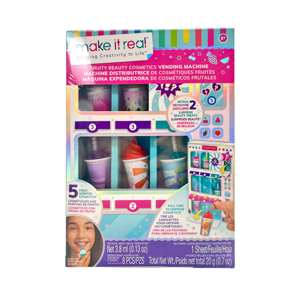 - ¿Alguna vez has soñado con tener una máquina expendedora llena de productos cosméticos que puedas personalizar? Con la Máquina Expendedora de Cosméticos Frutales Make It Real, ahora puedes hacer realidad esa idea de manera divertida y creativa. Este increíble kit te permite diseñar y fabricar tu propia máquina expendedora, ¡pero no cualquier máquina! Está llena de cosméticos frutales que puedes crear tú misma. Desde brillos labiales hasta lociones perfumadas, todo lo que necesitas está incluido para crear una experiencia única y totalmente personal.