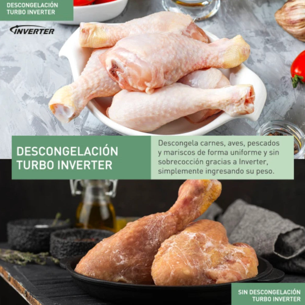 - Descongelación Turbo Inverter para un resultado rápido sin cocinar los alimentos.