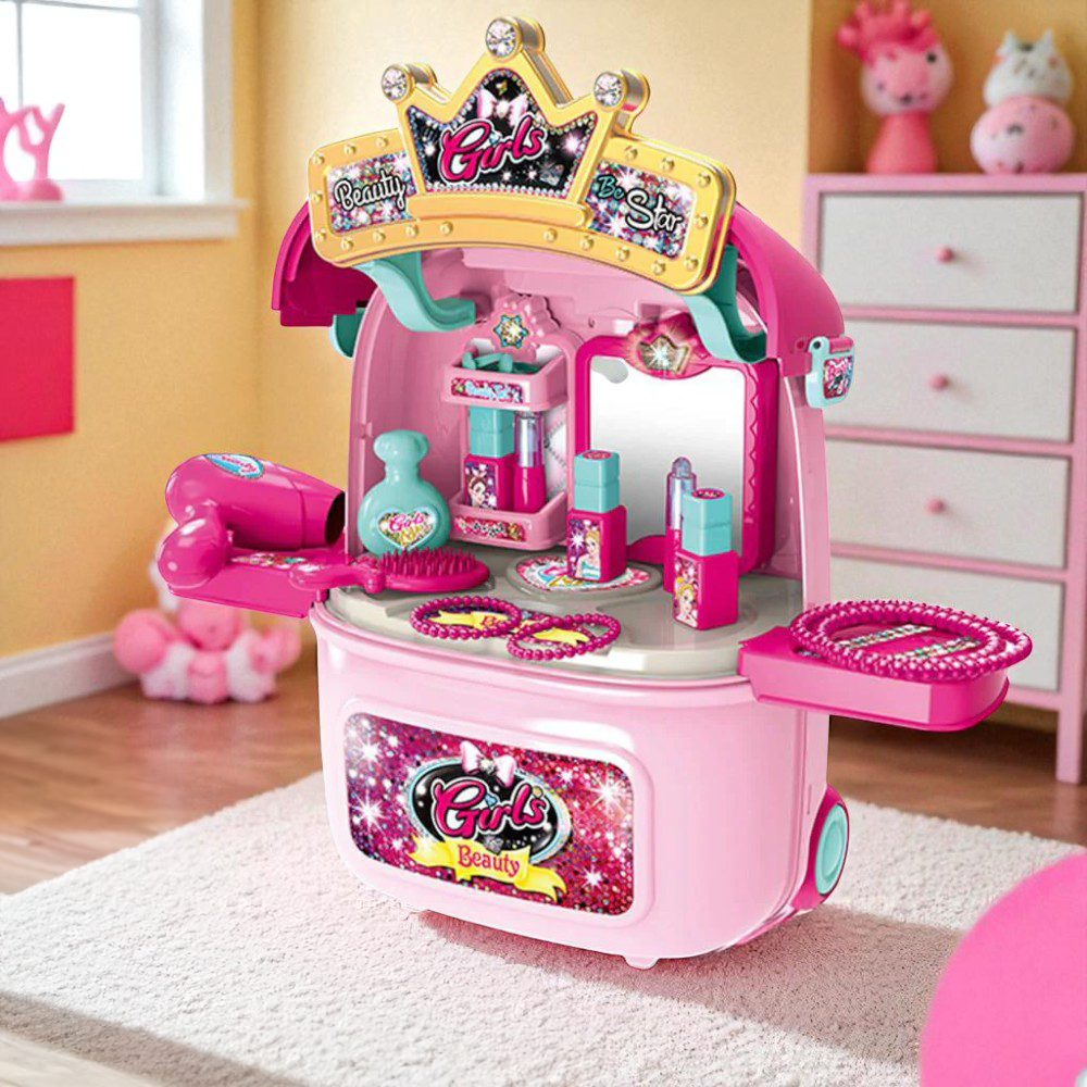- Esta linda mochila se convierte en un hermoso set de belleza.
