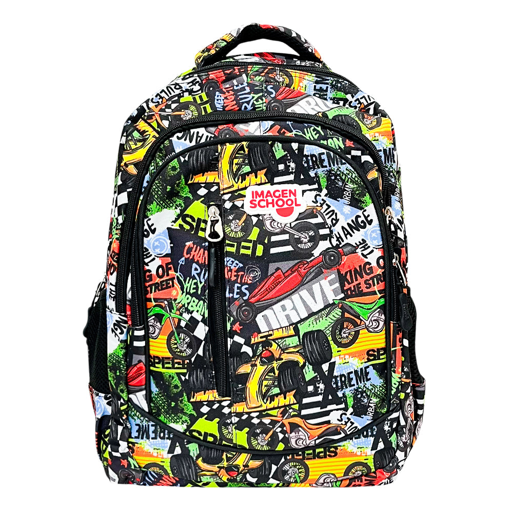 La Mochila Escolar 17” Imagen School Estampado Motociclista para Niño es ideal para el regreso a clases en Panamá. Con un diseño dinámico y funcional, ofrece el espacio necesario para organizar libros y útiles escolares con comodidad y estilo.
