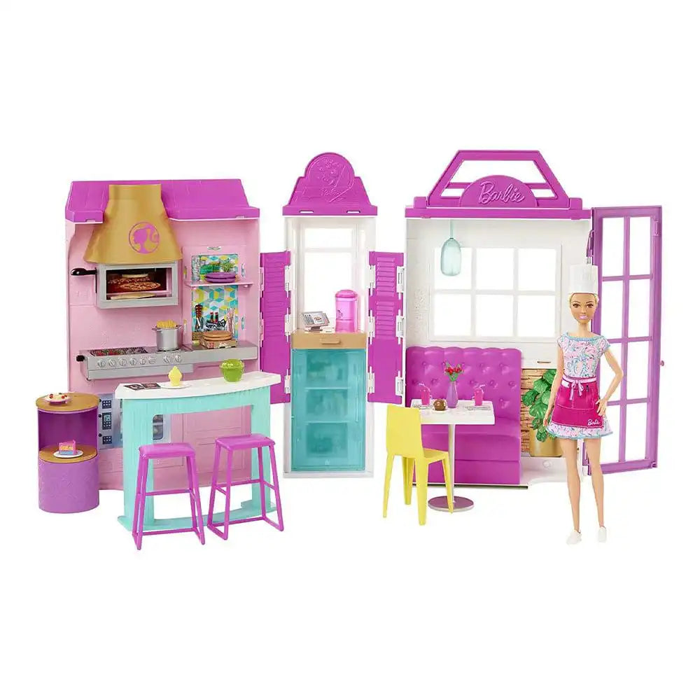 - Disfruta de divertidas historias con Barbie y el conjunto de juego Restaurante Cook 'n Grill con un diseño moderno.
