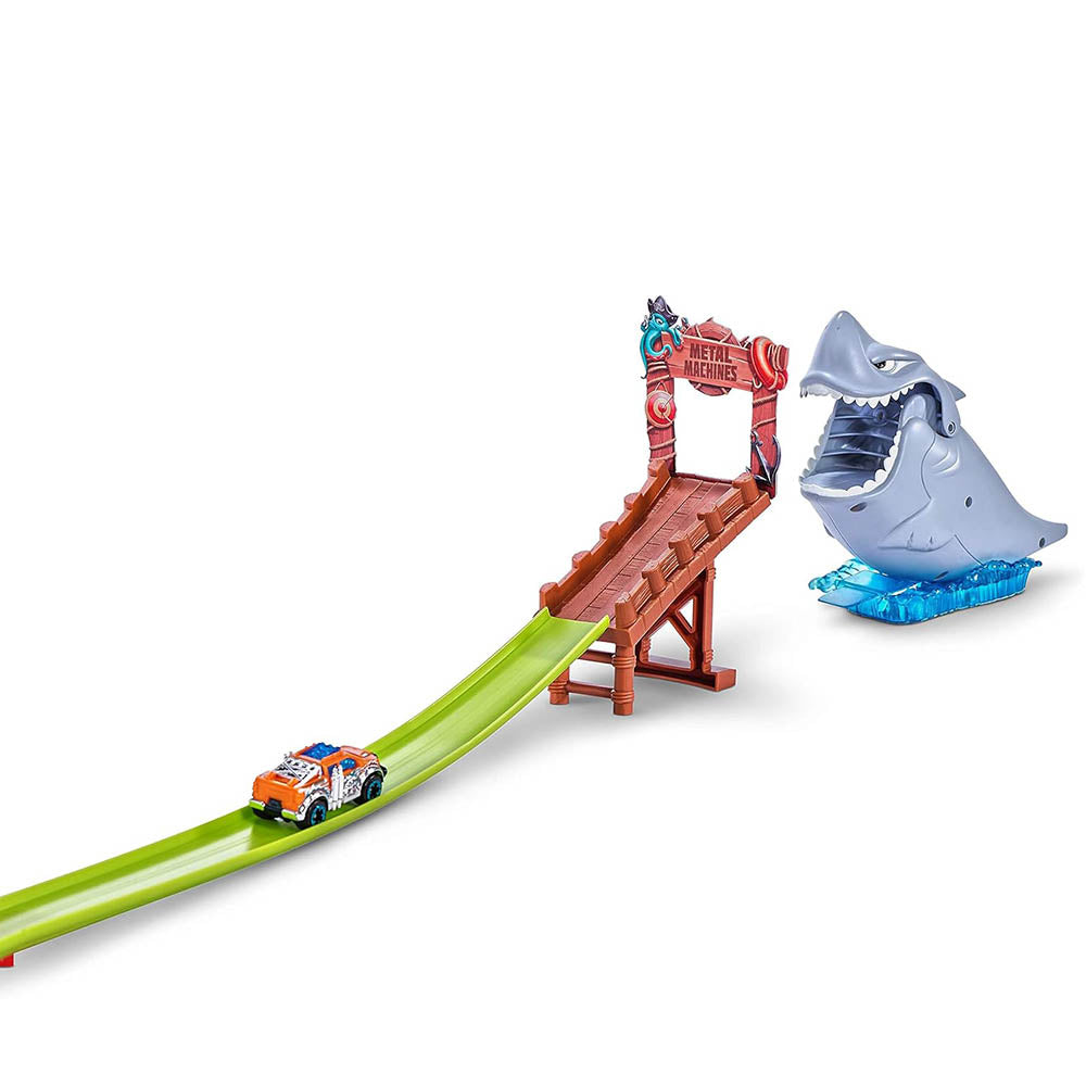 ¡Prepárate para una carrera salvaje! La Pista Ataque Tiburón de Metal Machines te reta a escapar de las feroces mandíbulas de un tiburón gigante. Acelera, esquiva y demuestra tu habilidad para conquistar la pista más extrema.
