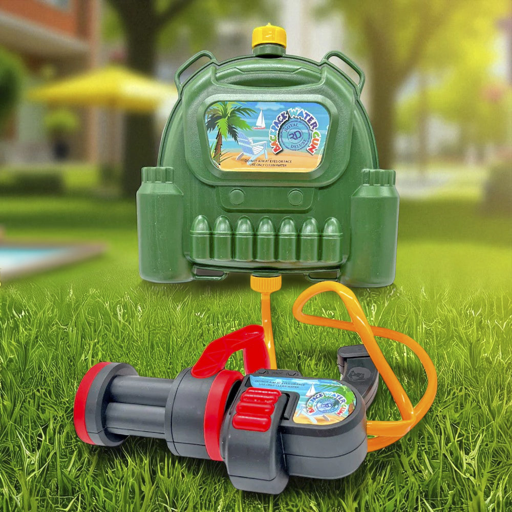 - El modelo de mochila permite a los niños cargar agua de manera constante sin necesidad de parar para llenar el tanque, lo que convierte cada disparo en una nueva oportunidad para mojar a sus amigos o familiares.