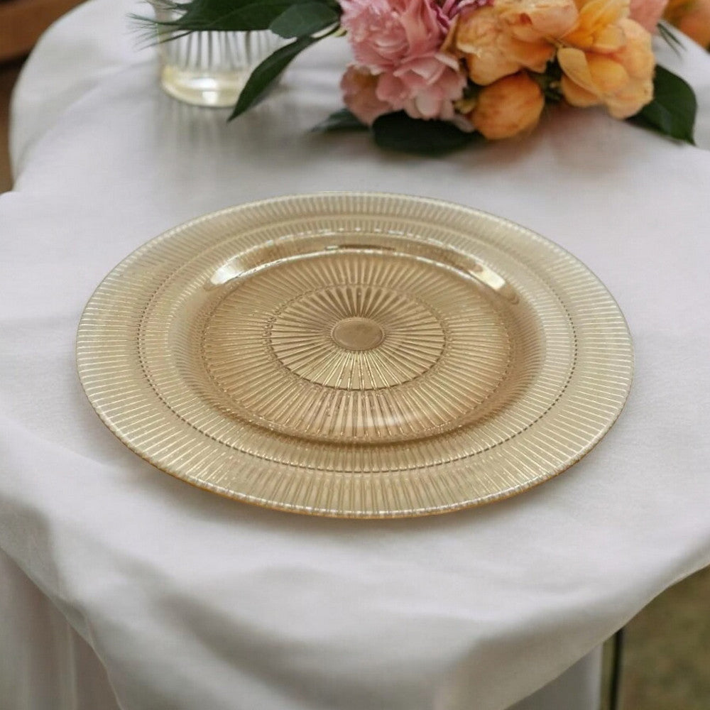 La base del plato presenta un diseño estructurado de líneas, que le confiere un aspecto único y sofisticado.
